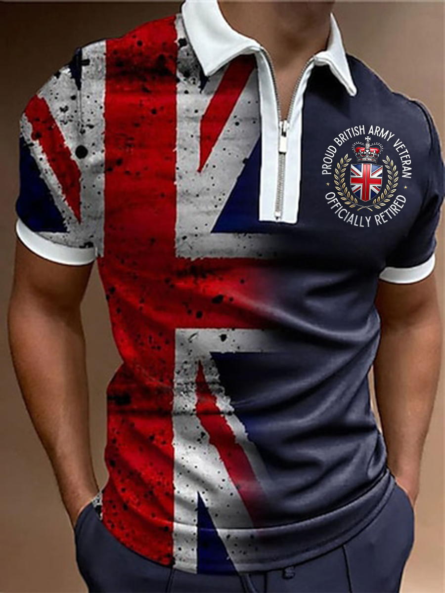 Men's Proud British Army Veteran Officially Retired Zip Up Short Sleeve