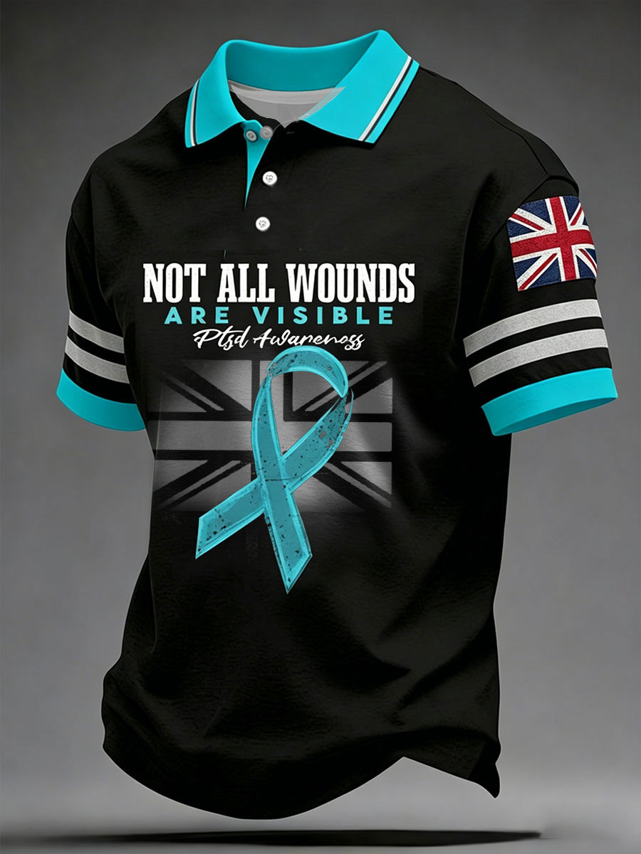 Men's Retro UK PTSD Awareness Printed Casual Tops