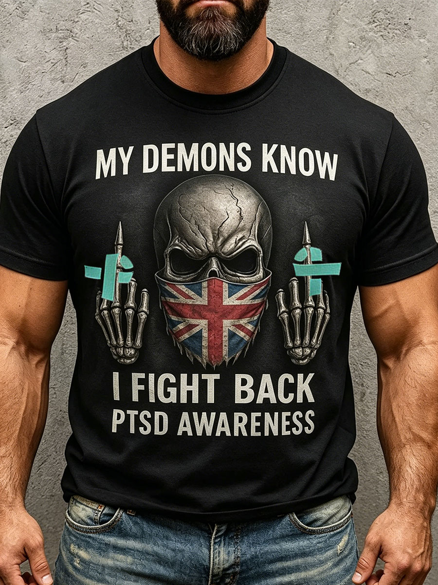Men's Retro UK PTSD Awareness Printed T-shirt